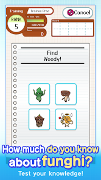 Oyun, başlangıçta Eğitim Modu ile başlar ve oyuncuların kendilerini geliştirmelerine olanak tanır. Soruların zorluğu arttıkça, oyuncular daha yüksek unvanlar kazanarak yeni meydan okumalara erişebilirler. Toplanabilir 700'den fazla mantar kartı ile, her bir kartın kendine has bir tanımı bulunmaktadır. Oyuncular, eğlenceli açıklamalarla birlikte mantarlarını keşfederken, aynı zamanda koleksiyon yapma zevkini de yaşayacaklar.